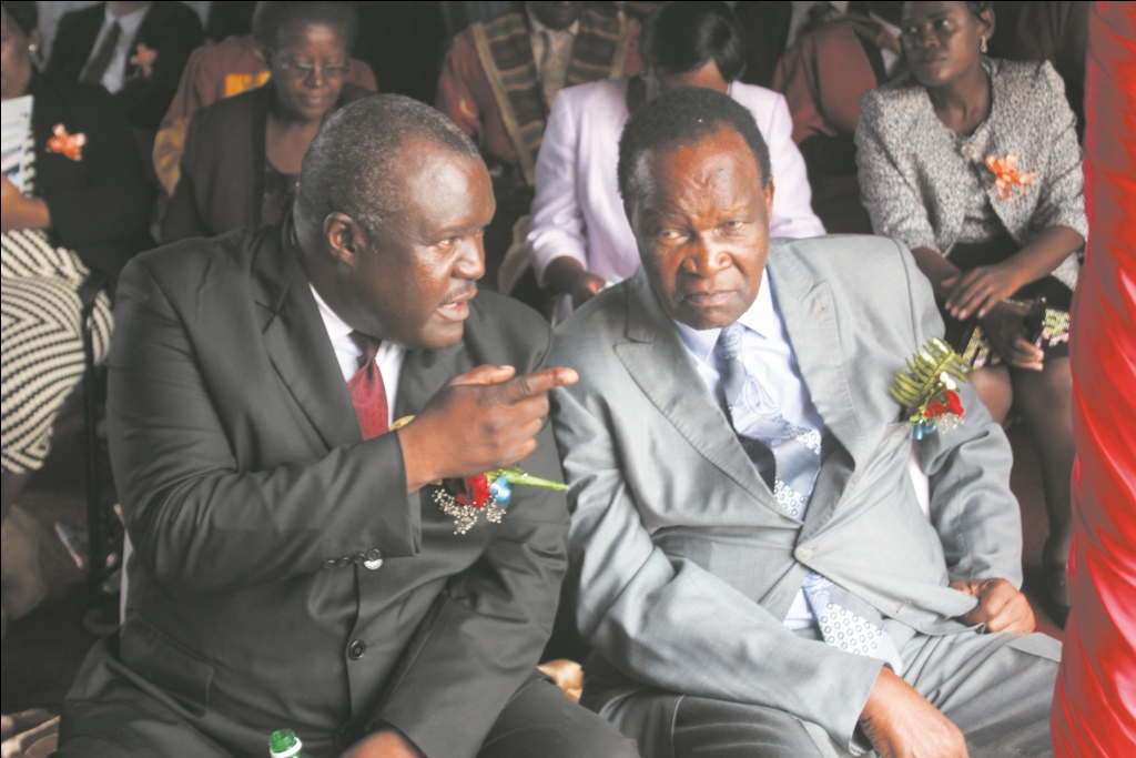 Masvingo Zanu PF godfather Josaya Hungwe (right) listens to Chief Fortune Charumbira at the RCU graduation ceremony last Friday