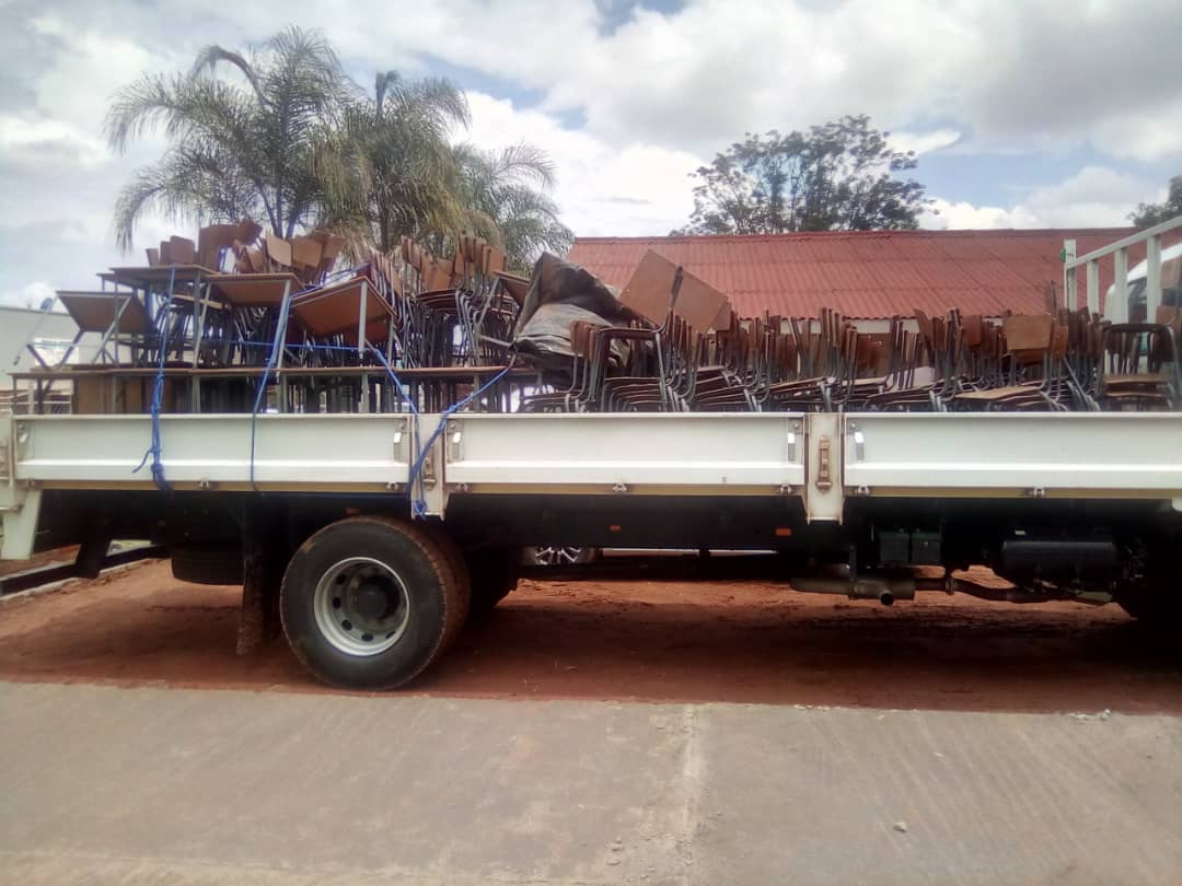 | A truckload of classroom furniture acquired using devolution funds |