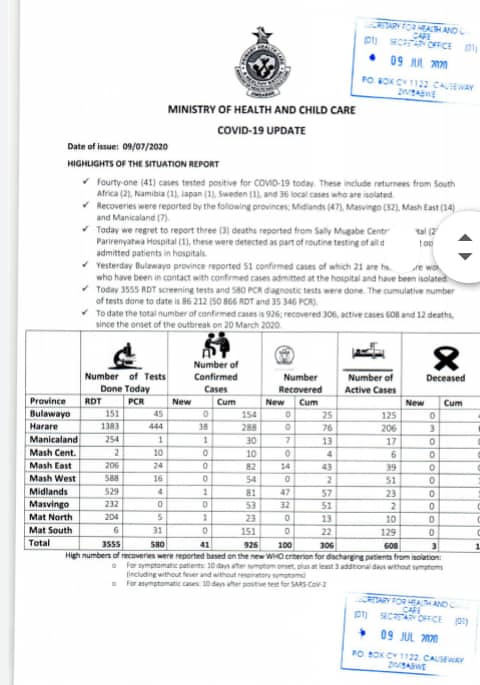 and high recovery cases as on July 10 are Mashonaland Central (4 recovered and