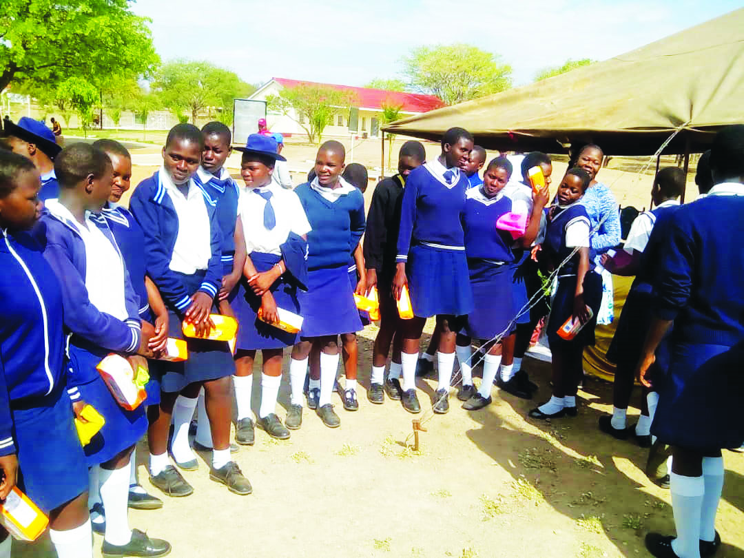 Pupils from 10 schools gathered at Mwenezi Government High School to receive their share from the 2 000 packs of sanitary pads.