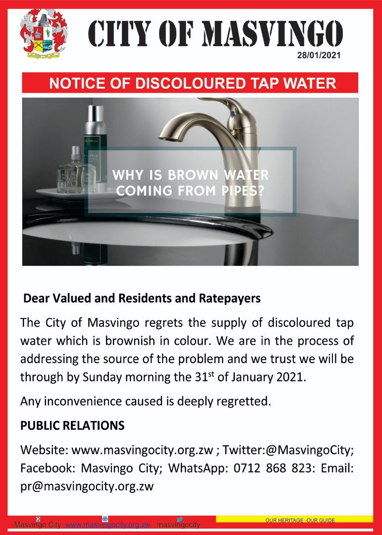 report by TellZim to the effect that the muddy water was a result of a maintenance