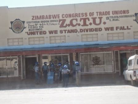 The Zimbabwe Republic Police (ZRP) disrupted the gathering at the Zimbabwe Congress of Trade Unions (ZCTU) from which people were to march to ZESA offices.